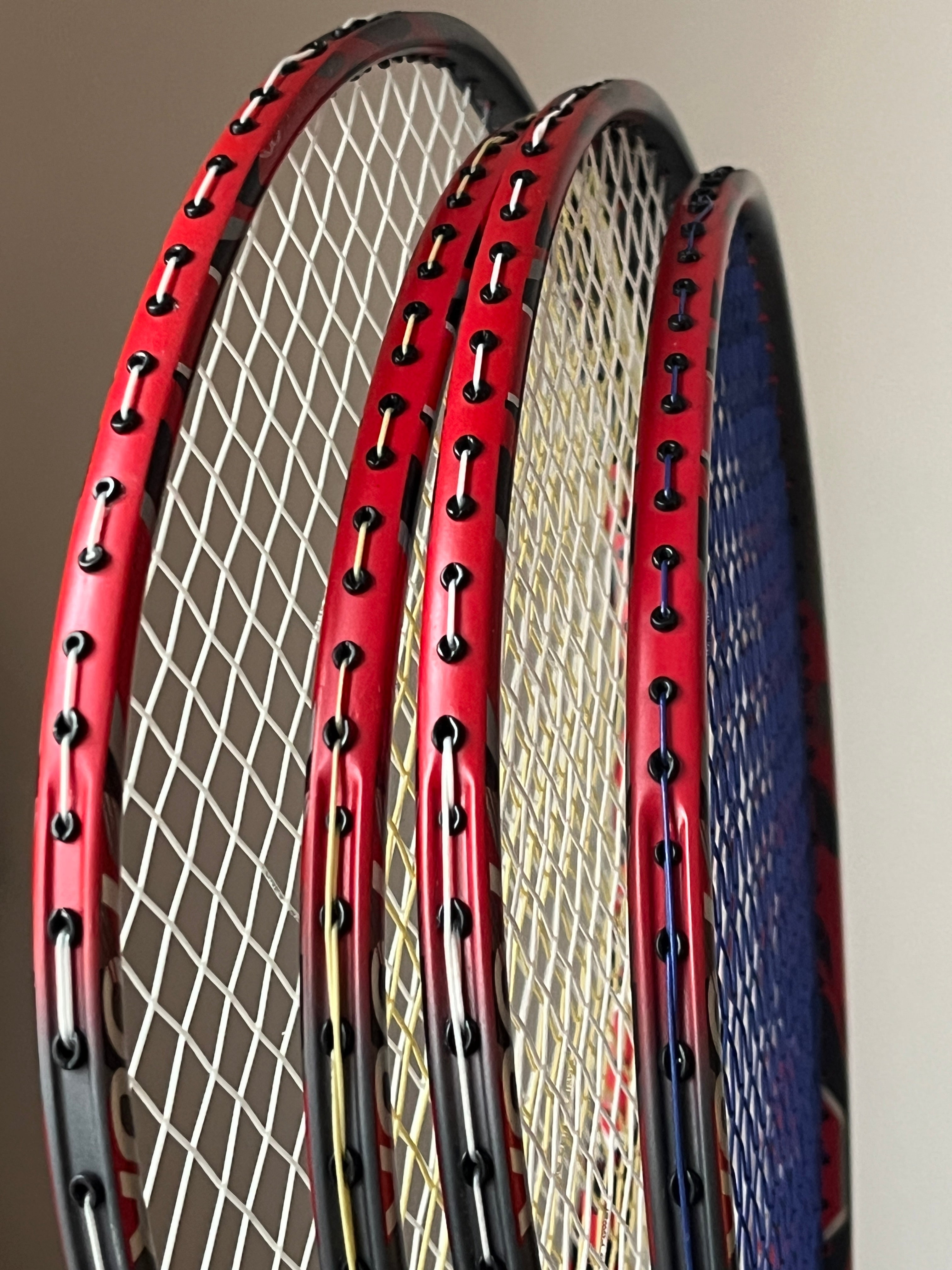 £75 is the price of a single racket; the image shows stock, not a sale package. This is a popular racket for intermediate to advanced players, ideal for high-level doubles players, and offers excellent value for money. The racket produces a crisp sound upon impact and delivers a very powerful feel when hitting the shuttlecock.