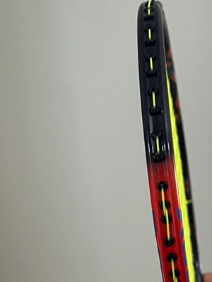 A very beautiful and high-performance racket, suitable for backcourt control in both singles and doubles. It boasts outstanding smash performance, producing a crisp and powerful sound upon impact. This is a racket with excellent value for money and although there are some signs of use, there is no obvious damage. Overall, it is 85-90% new and looks very nice.