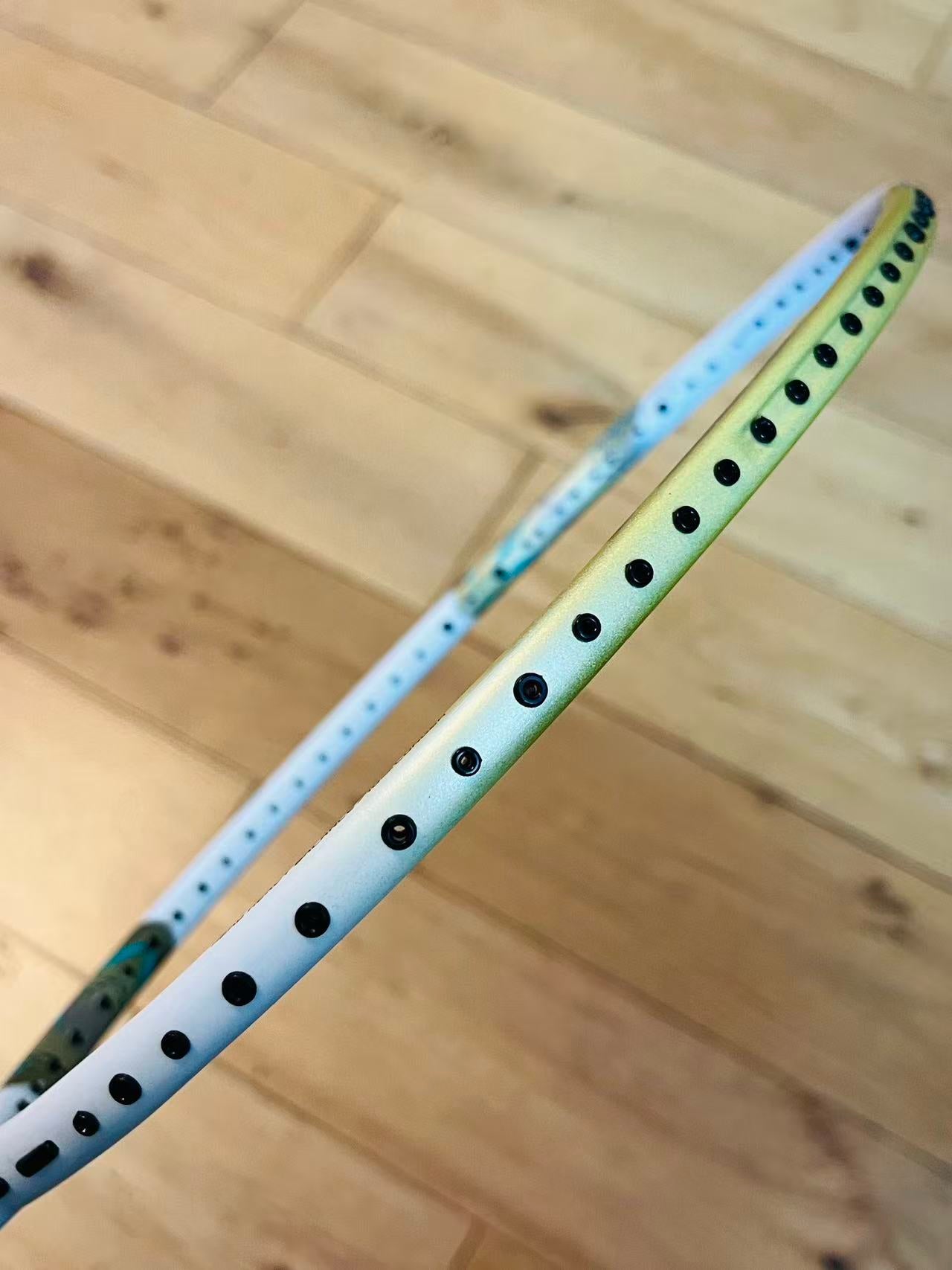 A very beautiful and high-performance racket, suitable for backcourt control in both singles and doubles. It boasts outstanding smash performance, producing a crisp and powerful sound upon impact. This is a racket with excellent value for money and although there are some signs of use, there is no obvious damage. Overall, it is 85-90% new and looks very nice.